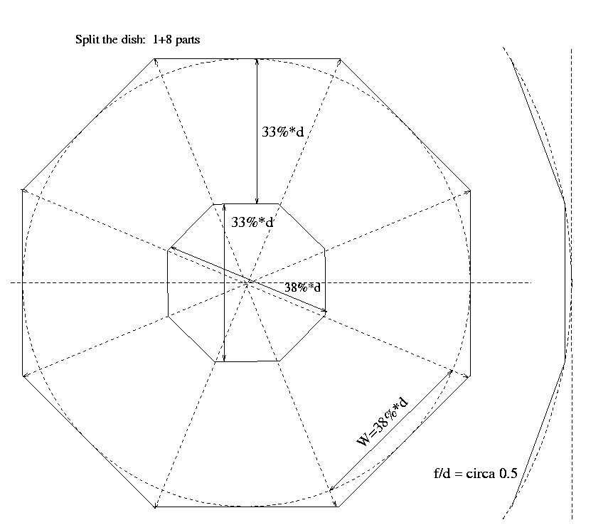 Full dish split to 1+8 parts: