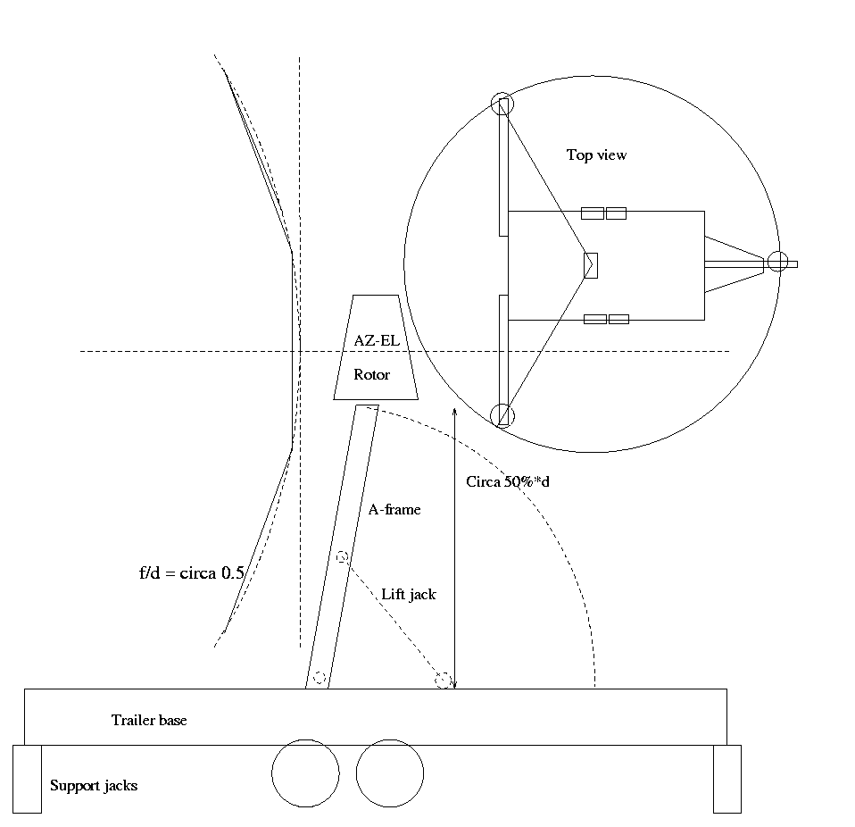 - Dish must be split into manageable size bits which fit horizontally into the trailer