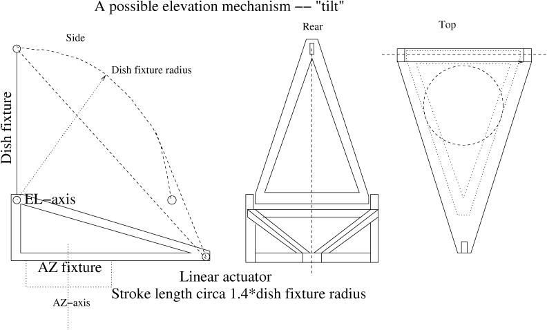 - Dish should possibly be letting wind thru (e.g. a fine mesh for the reflector surface -- but that is mechanically sensitive..)